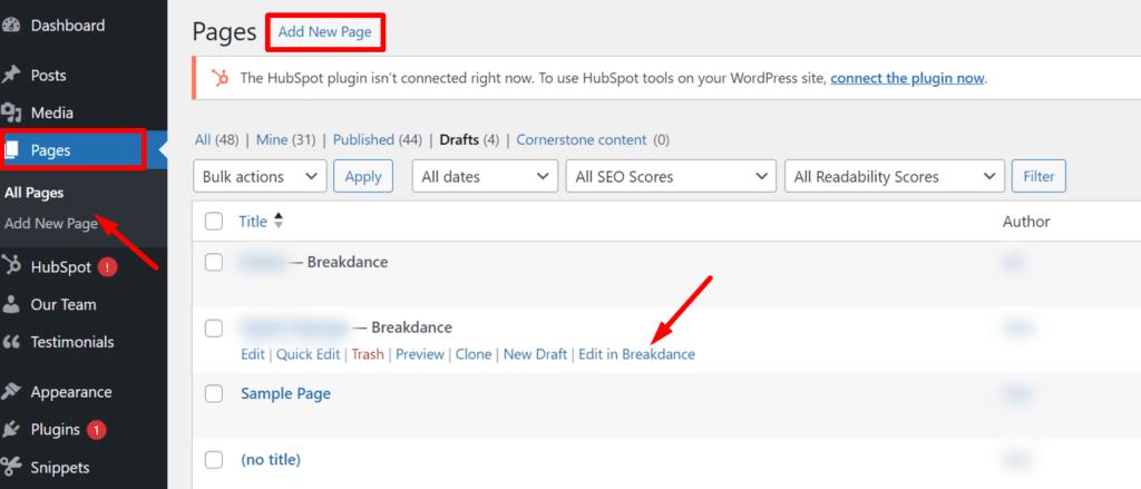 - Go to the page or post where you wish to change the text and images after logging into your WordPress dashboard. Click “Edit” in the corresponding section, or click “Add New” to start a new page or post.