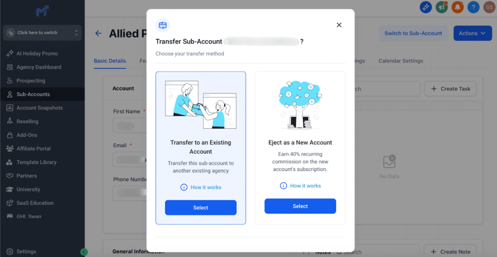 HighLevel’s sub-account transfer system ensures that all of your existing assets move over intact.