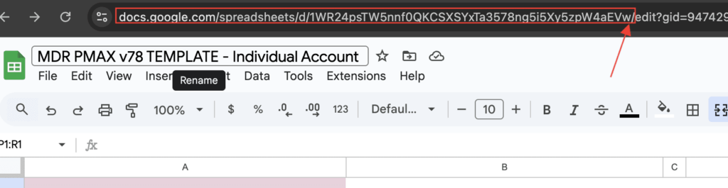 NOTE: Don’t forget to add the slash “/” at the end of your sheet url, for instance, the following screenshot shows the part of the sheet url you need to grab: