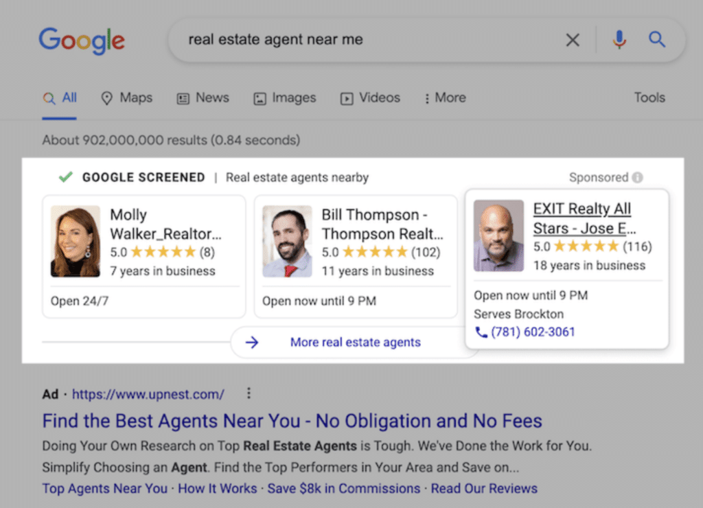 Google Local Services Ads are an ad type geared for home service-based businesses. While Google Search Ads are pay-per-click and Ad Rank is based on factors like bid, ad quality, and more, LSAs are pay-per-lead and ad rank is based on factors like customer reviews, proximity, and hours. The ads appear above regular Google Search Ads and the advertiser goes through an extensive verification process.